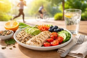Zistite, ako si vyskladať vyvážený jedálniček, ktorý podporí vašu energiu, výkon aj regeneráciu. Praktické tipy na jedlá pred tréningom, po ňom a počas náročného dňa.